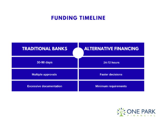 Alternative funding through providers like One Park Financial operates on an entirely different timeline. According to the company's materials, businesses can receive funding in as little as 24-72 hours. This speed matters when you're facing time-sensitive opportunities like bulk inventory discounts, emergency equipment repairs, or seasonal hiring needs.