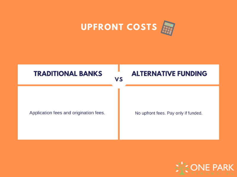 Traditional bank loans may involve application fees, origination fees, and other upfront costs regardless of approval outcomes.
